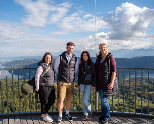 Der Tag begann mit einer Pressekonferenz in Klagenfurt, gefolgt von einer Schifffahrt am Wörthersee, einem Besuch des Pyramidenkogels und dem abschließenden Festakt im Casineum Velden. Rund 200 Gäste – darunter Mitarbeiterinnen und Mitarbeiter, Funktionäre und Partner aus der Forst- und Holzwirtschaft – sorgten für eine feierliche und zugleich herzliche Atmosphäre.